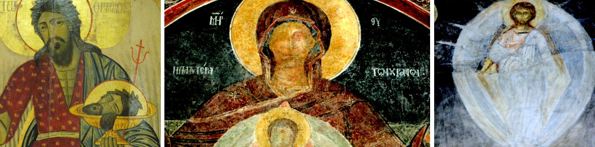 Det Kyrilliska alfabetet kommer från Bulgarien. Världens äldsta guldskatt hittades utanför Varna (3600-3200 fKr) och i Nessebar kan man beskåda några av kristendomens tidiga byggnadsminnesmärken. Johannes Döparens kyrka i mitten ovan (900-1000-tal) är den bäst bevarade med många fina fresker invändigt från 1200-1700-tal. De nakna och fördömda, nedan, är en beskrivade och avskräckande bild av dåtidens synsätt på rätt och fel.