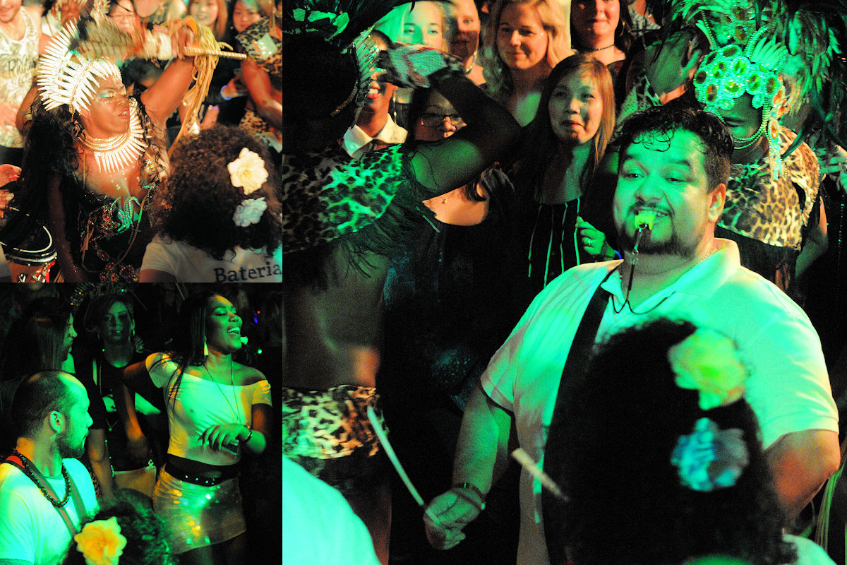 Influgna från Rio kom den tonsäkra sångaren Serginho do Porto tillsammans med Digão do Cavaco, the big guy with the small guitar för att sätta rätt karaktär på tillställningen. Cavaquinho är det portugisiska namnet på den Brasilianska ukulelen, ett måste i en sambaorkester. Det lilla stränginstrumentet har en fin och klar genomträngande klangbild. Tillsammans med slagverksorkestern Marhavila do Samba under ledning av Claudio Altamirano skapades en medryckande ljudmatta som lockade fler och fler dansare upp på scenen.