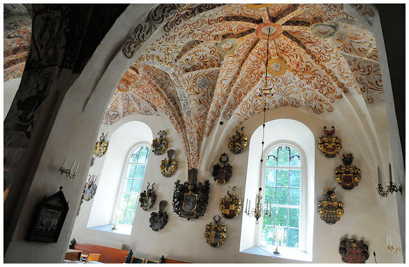 Självklart finns Nordens första helgon S:t Olof avbildad i en av valvkapporna. I mitten nedan tillsammans med S:t Henrik som led martyrdöden i Finland på en missionsresa tillsammans med S:t Erik. Helgonen flankeras av mer folkligt anonyma karaktärer, kanske med lokal förankring.