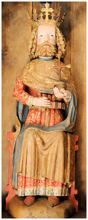 Bilden i mitten nedan föreställer Magnus Ladulås, en tämligen profan figur i sammanhanget avbildad med både kungakrona och helgongloria. Dessutom är han klädd som en Franciskanermunk. I vänster hand håller han en bok, som sannolikt ska symbolisera en lagbok och hans roll som lagstiftare. Av Franciskanerna i Strängnäs stift betraktades Kung Magnus som ett helgon. Författaren och bloggaren Dick Harrison skriver i Historiebloggen SvD 3 augusti 2011 att; Att franciskanerna i Stockholm vördade Magnus som sitt speciella helgon är inte konstigt. Förutom att Magnus gav hela svenska kyrkan omfattande privilegier var han synnerligen frikostig mot just Stockholmsfranciskanerna. Han ombesörjde att få bli begravd i deras kyrka, vilket även blev fallet. Förutom i Stockholm förefaller emellertid inte Sankt Magnus ha varit särskilt dyrkad.