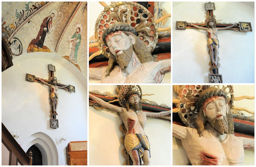 Den stående Madonnan är magnefik i färg och lyster även om den kan uppfattas som lite prålig i jämförelse med den jungfruligt vackra framtoning som Madonnan har i den sittande varianten från tidigt 1300-tal. Här är stilen influerad av samtida tyska verk, men tillverkad i Sverige, sannolikt på Gotland. Se bild nedan till vänster. Det ståtliga triumfkrucifixet är från tidigt 1500-tal och konserverades i slutet av 1900-talet av Peter Tångeberg till nuvarande status. Ett imponerande arbete som ger ny lyskraft åt det medeltida konsthantverket.