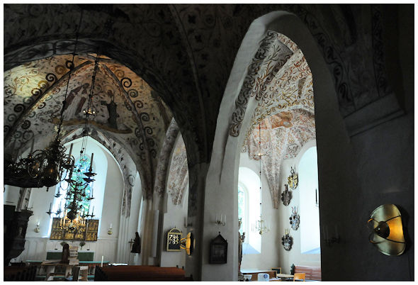 Predikstolen är från mitten av 1600-talet och tillskrivs domkyrkosnickaren Mikael Rechner i Strängnäs. Snidade träfigurer på korgen återger de fyra evengelisterna. Sammantaget är detta en av de mest facinerande och innehållsrikaste kyrkorna jag hittills besökt med massor av minnen från tiden innan och även efter Gustav Vasas intåg på den andliga scenen. Hela Selaön är ett fint utflyktsmål liksom vägen dit. Mer om Selaön och dess runstenar hittar du på sidan Mälardalens Medeltidskyrkor, som även dokumenterar några stopp längs vägen dit.