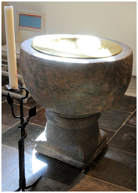 Vid renoveringen på 1800-talet fick kyrkan även på norrsidan en utbyggnad som skulle harmonisera med det kapell som byggdes 1626. Med ens fick kyrkan karaktären av en korskyrka och det exteriöra utseende som idag möter besökarna. Samtidigt fick kyrkans fönster sitt nuvarande utseende. Järndörren in till sakristian är i original och samtida med sakristian. Skicket på dörren är fantastiskt. Mitt emot sakristian framme i kyrans kor står en vacker dopfunt i huggen sten. Troligen ett Svenskt arbete från början av 1200-talet. Se bilder nedan.