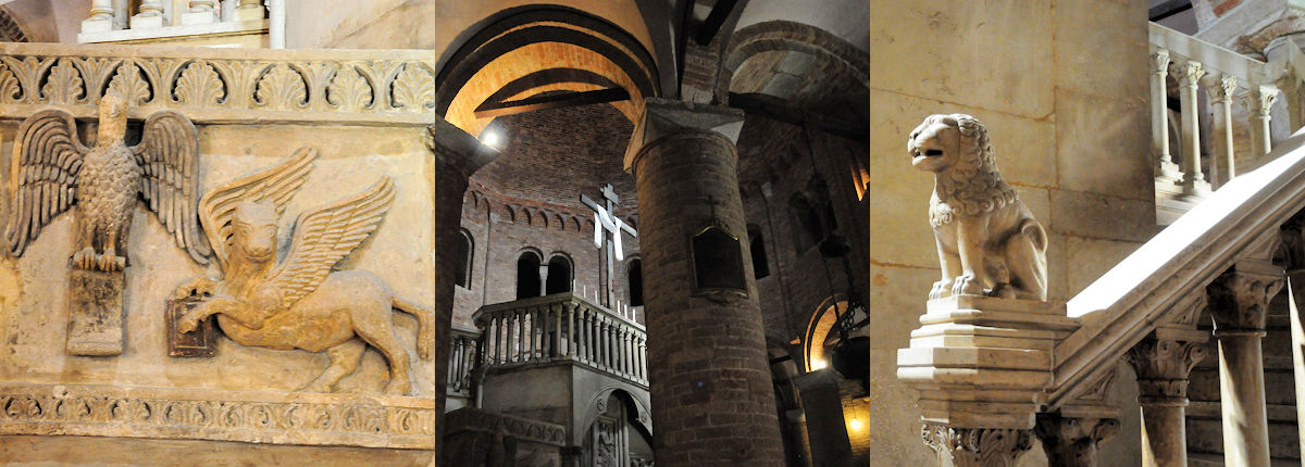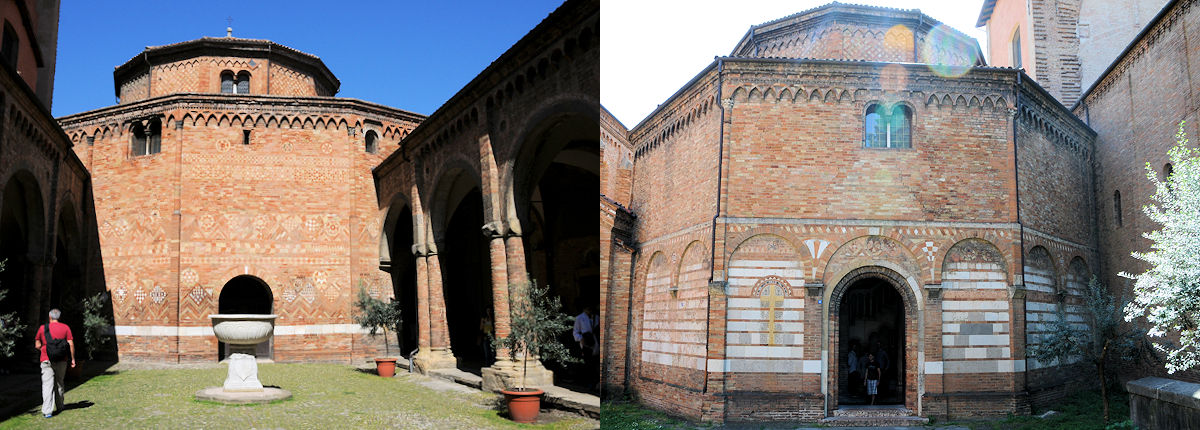 Jag lämnar det vackra öppna torget och spänd av förväntan går jag in via 1) Det Heliga Korsets kyrka. Här finns kryptan med Abbotens grav från 1019, men det som lockar mig är den åttkantiga kyrkan som ligger vägg i vägg. Genom en smal passage till vänster om högaltaret tar jag mig in i 2) Den Heliga Gravens kyrka. Magiskt. Kyrkorummets runda pelarsal imponerar. Centralt placerad återfinns den helige San Petronios grav och relikskrin, som en kopia av den Heliga Gravens kyrka i Jerusalem. Normalt hade detta räckt alldeles utmärkt och jag hade nöjt åkt hem med denna fantastiska upplevelse, men bakom nästa vägg fanns en tredje kyrka, den äldsta 3) Basilica dei Santi Vitale e Agricola. Min resa i tiden var fullbordad när jag steg in i den klassiska basilikan, ett arv från den Romerska eran här i Kristen skrud. På några tio-tals minuter hade jag förflyttats från Longobardernas 700-tals skapelse, via rotundan från 400-talet till 300-talet och ett av de första Kristna monumenten, bevarad tämligen osminkad utan alltför många influenser från senare eror.