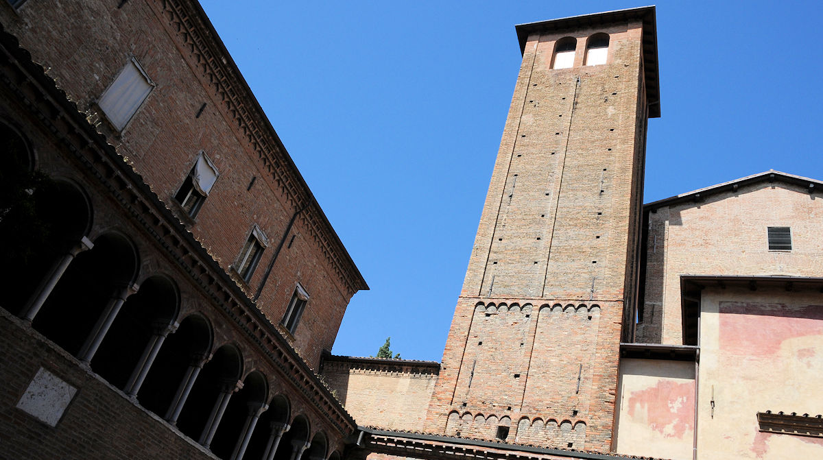Allt detta egentligen av en ren slump. Inför resan hade jag läst om den väldiga San Petronio Domen. En av Kristenhetens största gotiska kyrkor centralt belägen vid Piazza Maggiore. Men denna skatt hade gått mig förbi. Det var under en av mina utforskande fotopromenader jag i en gränd fick syn på något som stack ut. En byggnad som skiljde sig från den medeltida stadsbilden. Bilden till höger. När jag gick runt hörnet till höger om byggnaden möttes jag av torget Piazza Santo Stefano och förstod att jag funnit något alldeles speciellt.