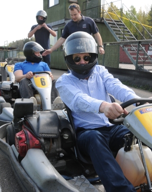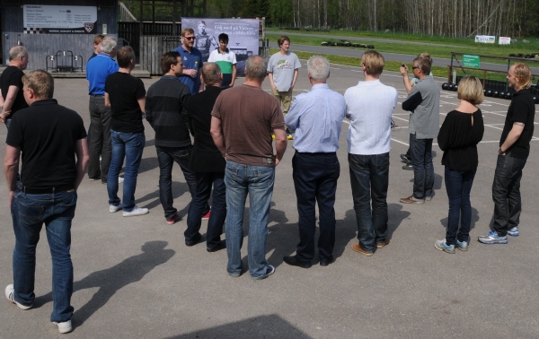 F1 gurun och motorsportskommentatorn från bland annat Viasat Motor, Janne Blomquist hade genomgång i klubbhuset för att alla skulle komma i rätt stämning innan racet. Vid depån delades vi upp i sex lag med fyra förare i varje. Victor Bouveng en lovande 16 åring som lämnat GoKart tävlingarna bakom sig och nu siktar på en karriär i de högre klasserna, fanns med i ett av lagen. Tävlingen gick ut på att köra så många varv som möjligt på 80 minuter och gissa vilket lag som vann?