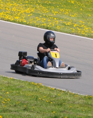 Väl ute på banan växte hornen ut på de flesta av deltagarna. Det blev en hård kamp mot naturlagarna. Bilarna kom upp i en hastighet kring 70 km/h och jag tror att min puls var uppe i 170 redan efter tredje kurvan. Det sladdades och bilar snurrade, men inga incidenter med kroppsskada.