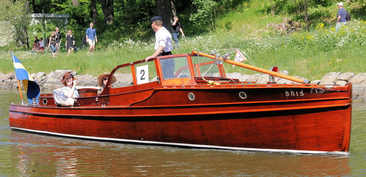 Välpolerade veteranbåtar i Djugårdsbrunnskanalen