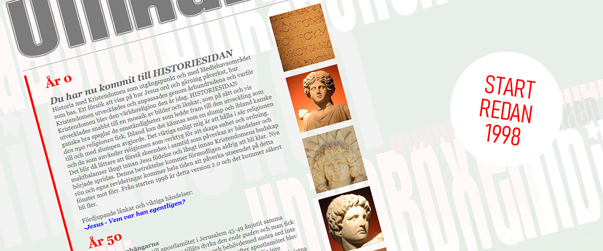 Redan 1998 fick jag för mig att skriva en övergripande och lätthanterlig Kristendomshistoria. Intresset väcktes efter en rundresa i Italien 1993 och 2017 publicerades en sida med scannade diabilder, som beskriver lite av den fascination jag upplevde då och hur allt sedan fortsatte. Ville hitta en övergripande kontext och tyckte det var svårt att hitta svaren jag sökte. Hur svårt kan det vara? Idén byggde på en lodrät tidsaxel som började år 0 och skulle omfatta Kristendomens tvåtusenåriga historia. Resultatet finns kvar under Historia, men underhållet av sidorna har sedan länge avstannat och om målen med övergripande och lätthanterlig nåtts är tveksamt, men det var en kul och lärorikt tid åtminstone för mig. Något som åtminstone ibland får lite kärlek är min samling över besökta kyrkor. En samling som först publicerades 2012, som ett komplement till Historiesidorna. Där samlar jag fortfarande besökta kyrkor i kronologisk ordning efter kyrkans ålder, parallellt med historiska skeenden och beslut, med fokus i första hand på Skandinavien.
