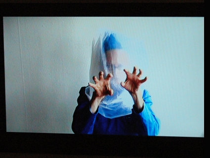 "Iklädda blå arbetsoveraller och med skoskydd på huvudet gör PRZ en platsrelaterad resa i den blå färgens mångfaldiga betydelser; i språket, konsten, jaget och i tvättstugans folkhemstanke."