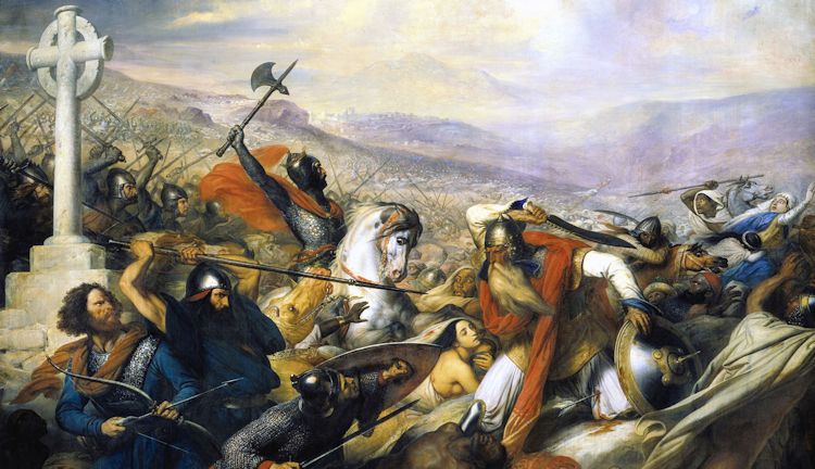 Charles de Steubens målning Bataille de Poitiers en Octobre 732 från 1837 skildrar en triumferande Karl Martell på sin vita häst